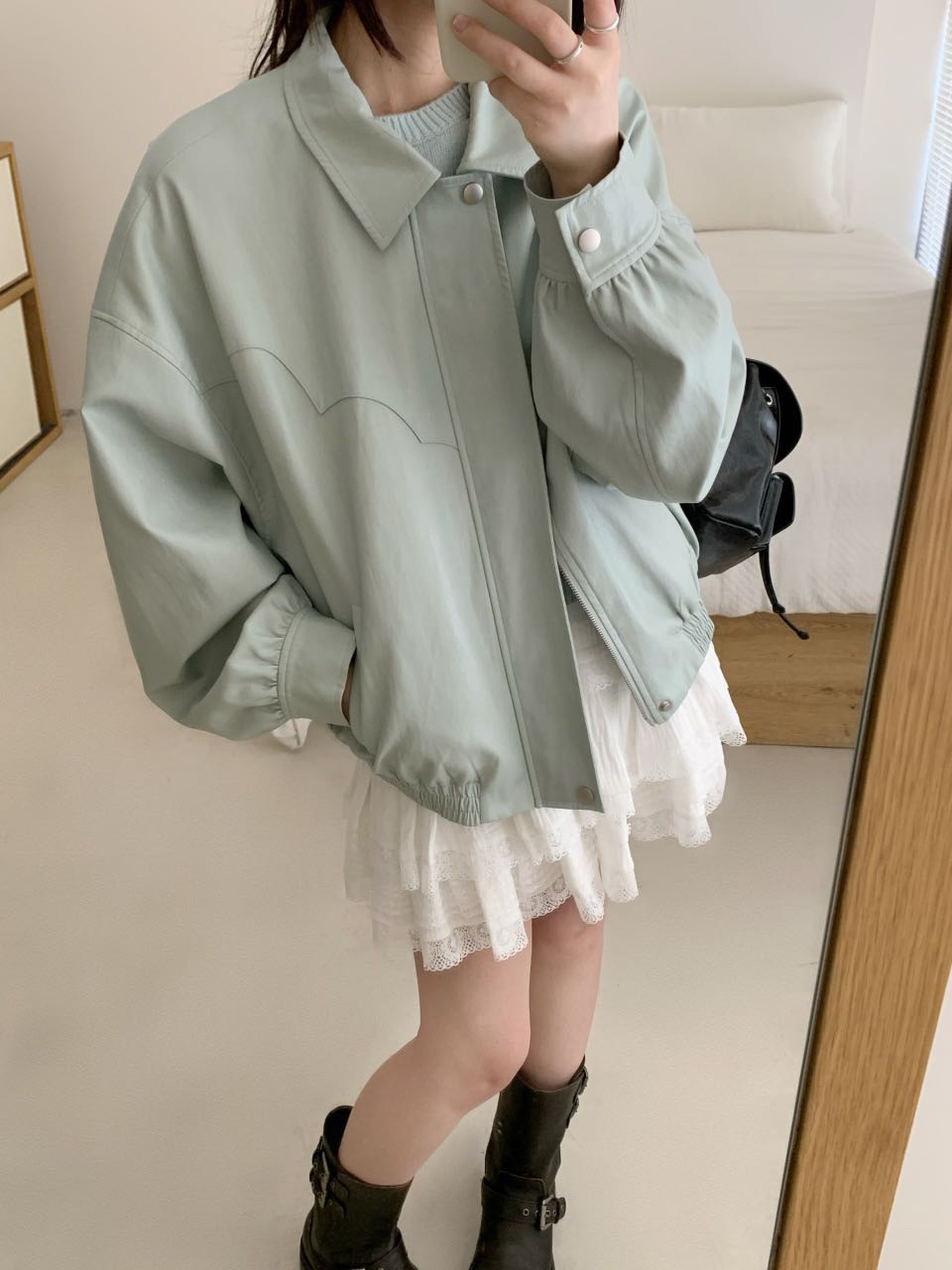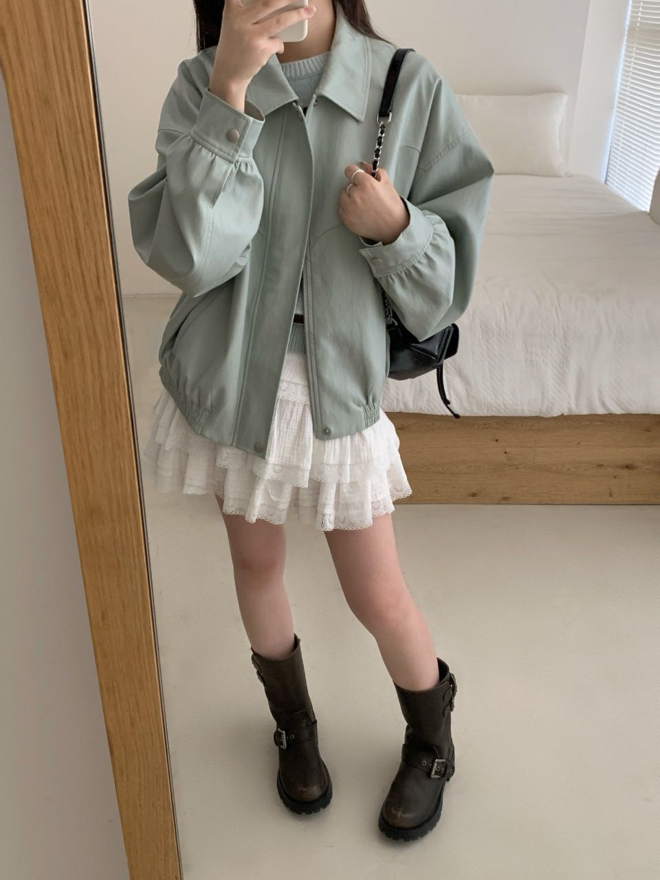 Serendipity Color leather jacket mint green